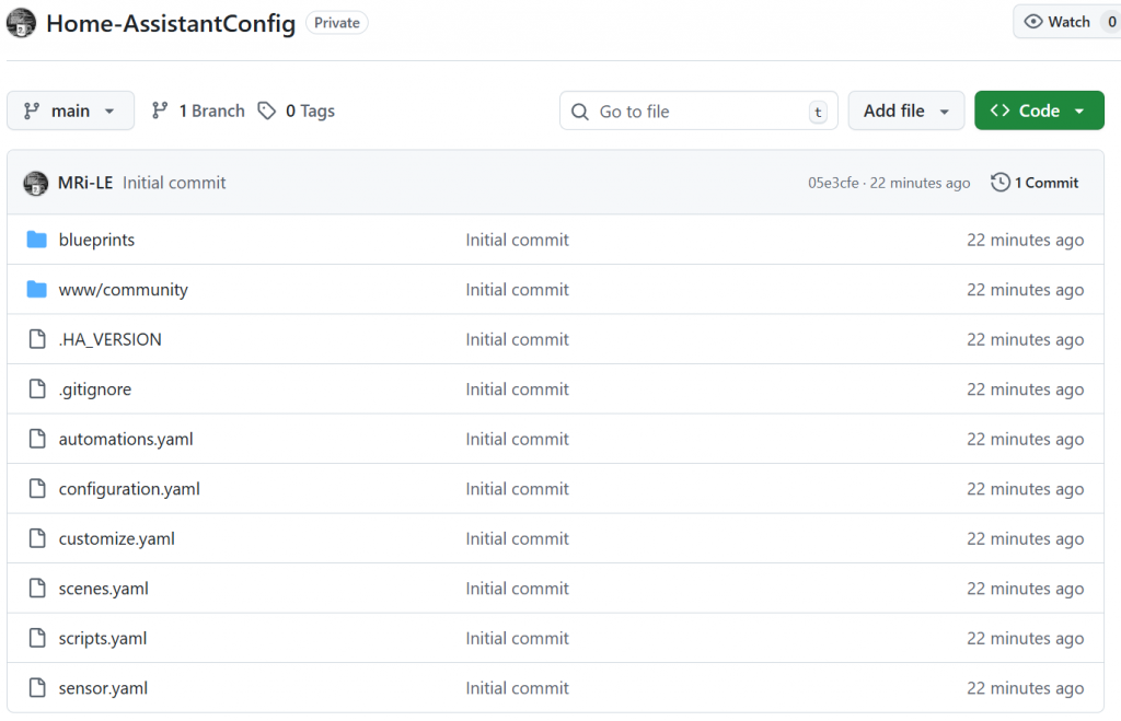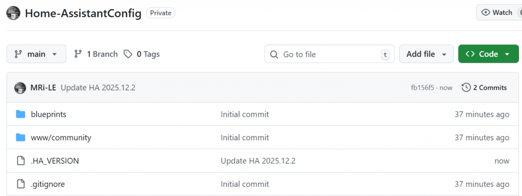 You now have a first commit of your current Home Assistant Configuration on GitHub