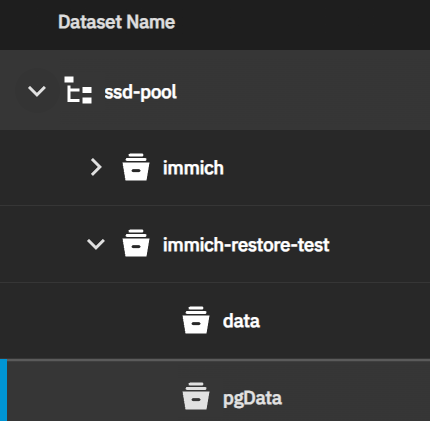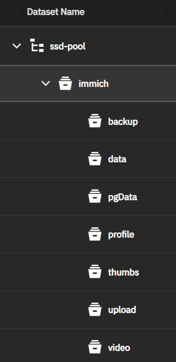 Für den Restore Test, habe ich mir eine zweite Instanz von Immich erstellt und für diese 2 weitere Datasets angelegt.